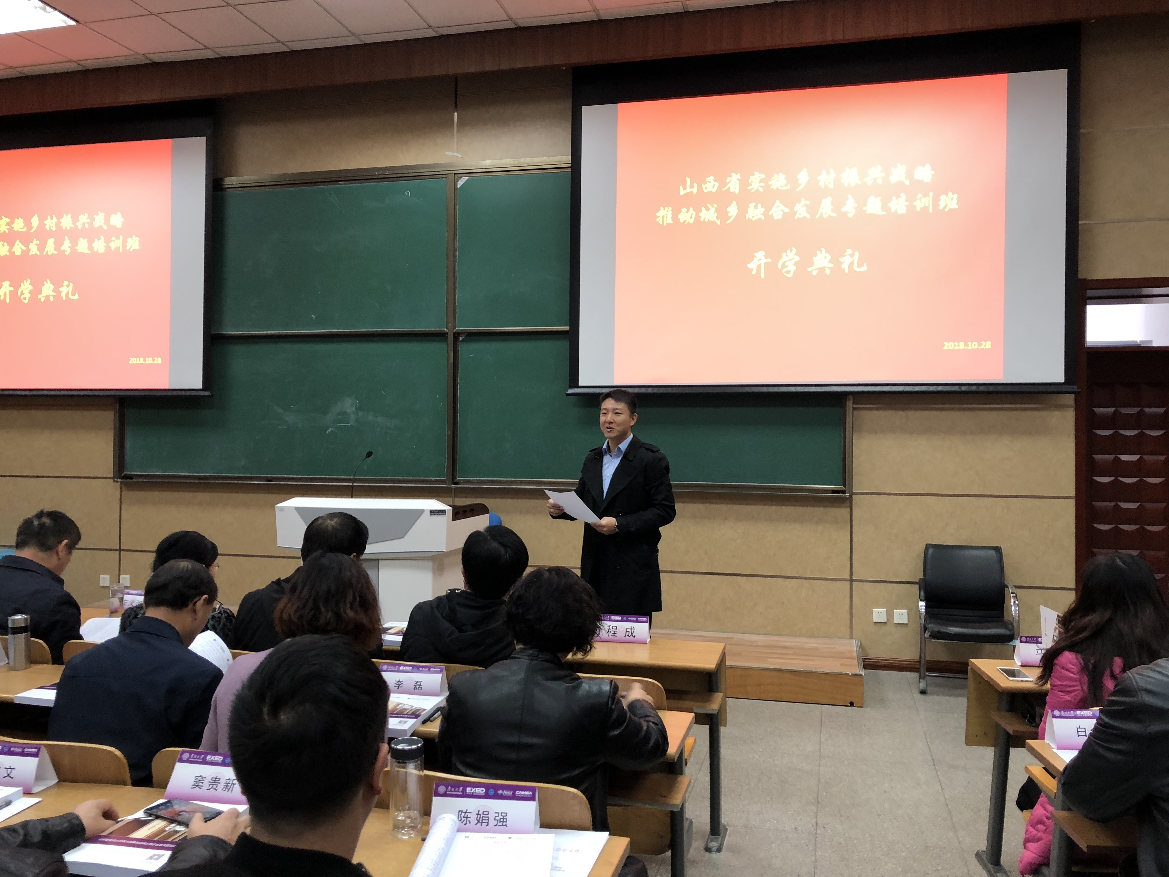 2018年10月28日,山西省农业厅关于“实施农村振兴战略推动城乡融合发展专题培训班”在必赢bwin官网入口顺利举办开班典礼。出席本次开班典礼的领导有:必赢bwin官网入口党委书记孙跃老师,山西省农业厅巡视员左义河先生,由必赢bwin官网入口高层管理教育(EXED)中心副主任程成老师主持。