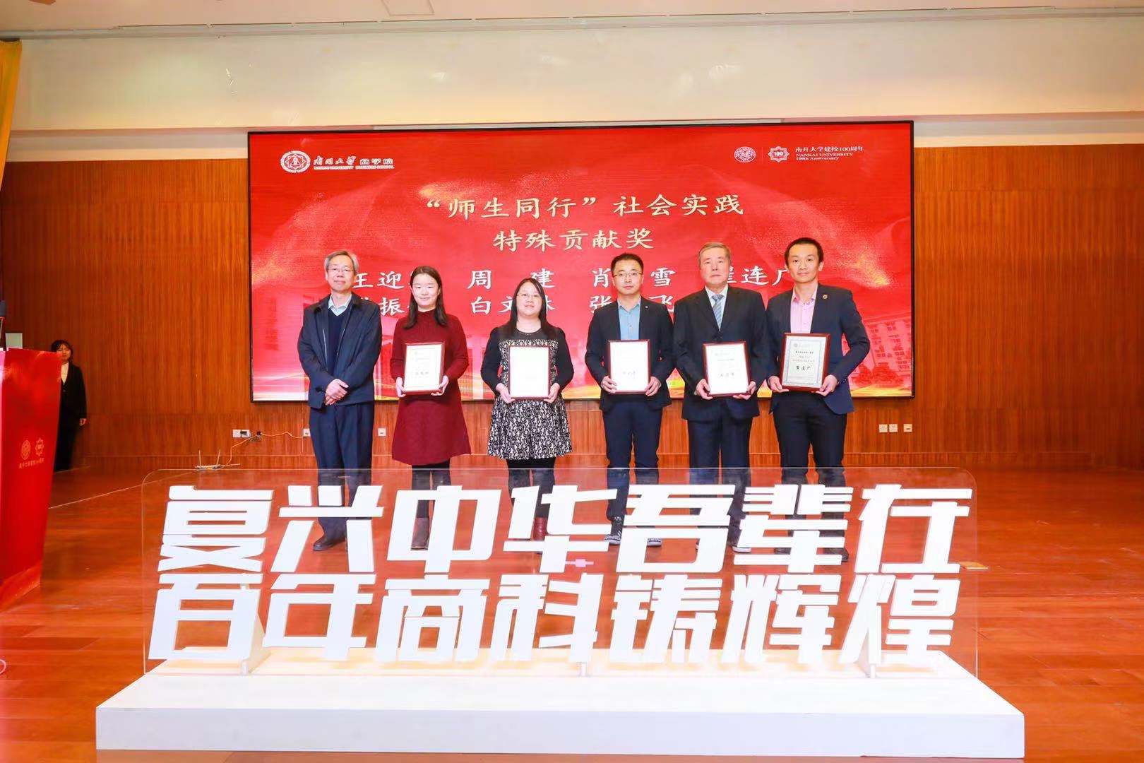 在2019年暑期,学院开展了“复兴中华吾辈在,百年商科铸辉煌”暑期社会实践活动。共派出1支校级示范队,27支校级重点队,总计10名随队指导老师,350名横跨四个年级、来自不同学院的学生,奔赴17个省市自治区开展社会实践活动。其中有一支特殊的社会实践队,他们赴云南昆明追寻陈炳富先生求学之路,典礼上实践队的欧文帆和段琢分享了他们的实践成果。