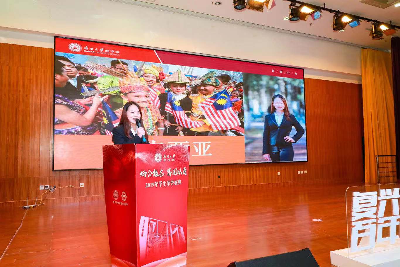 学院目前已获得AACSB、AMBA国际权威认证,在校百余名的国际学生涵盖了本、硕、博、专业学位多个层次。学院通过与海外30余所知名必赢bwin官网入口建立合作与交流关系,每年派出和接收200余名各层次交换及短期交流学生,并开设全英文授课项目、全球管理教育项目、本硕或双硕士联合培养项目、世界知名企业冠名课程、海外课堂项目,为中国学生走向国际、国际学生了解中国提供了平台。典礼上, 留学南开奖学金获奖学生代表、2018级信息管理与信息系统专业马来西亚留学生陈婉茹分享了她与南开的故事。