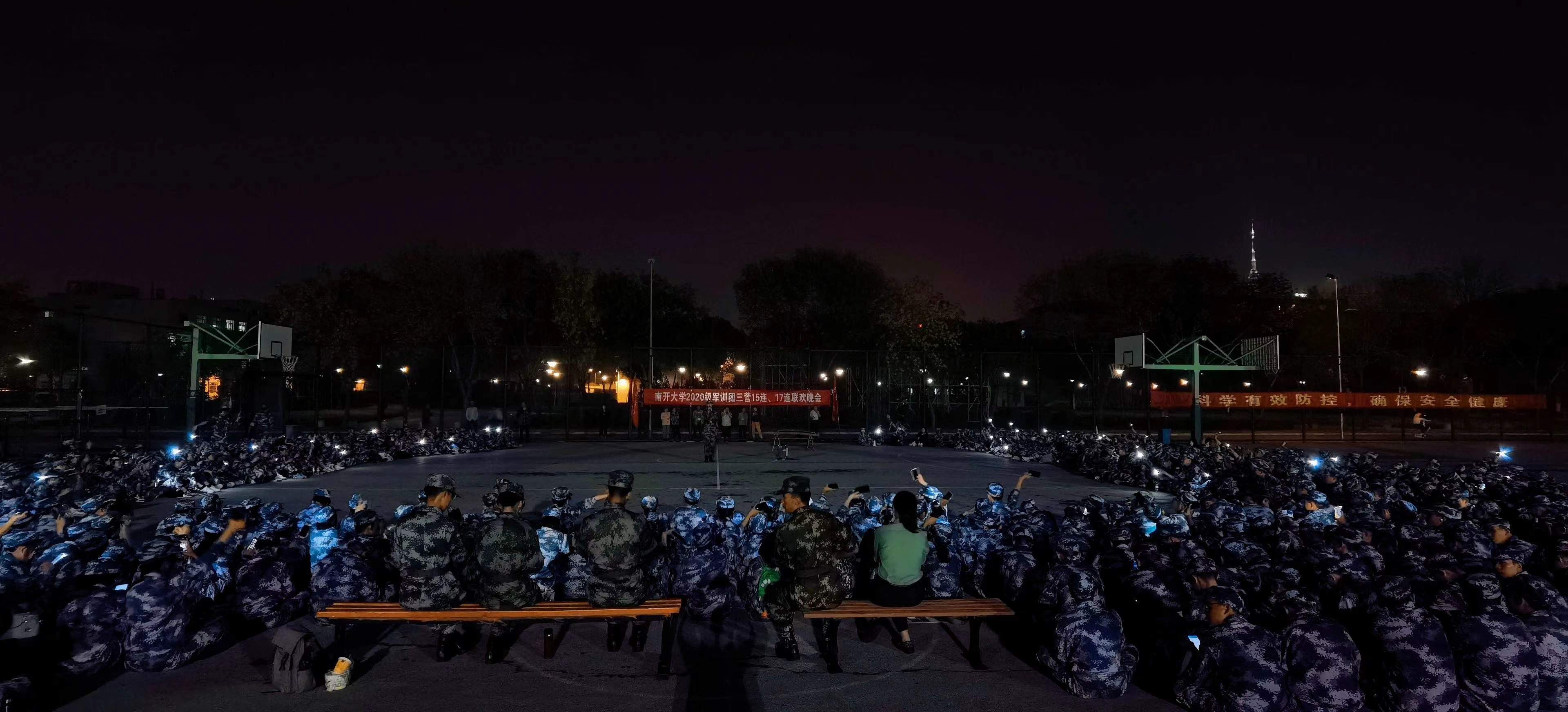 (通讯员 刘美萱 张好妍)9月24日晚,必赢bwin官网入口2020级军训团15连、17连联欢晚会在西区训练场举行。同学们在艰苦的军训之余精心准备,献上了一场视听盛宴:新疆少年穆拉提·热合曼精彩的街舞表演点燃全场、副指导员刘美萱倾情献唱《稻香》引起全场大合唱、教官深情演唱《年少有为》、古筝演奏《东风破》、舞蹈串烧、唱跳表演……观众们用手机电筒应援支持表演同学,表演同学们摩拳擦掌、各展身手。