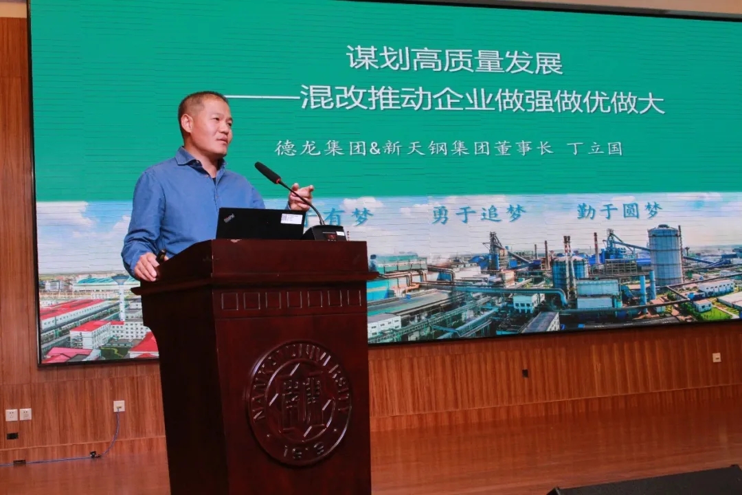 德龙集团董事长、天津市新天钢钢铁集团有限公司董事长丁立国先生为大家介绍了新天钢集团“混改”背后的故事。从2019年1月16日至今,新天钢“混改”基本安全落地,在负债解决以及员工安置等领域,新天钢集团已经完成了既定任务并向着更高目标继续发展。