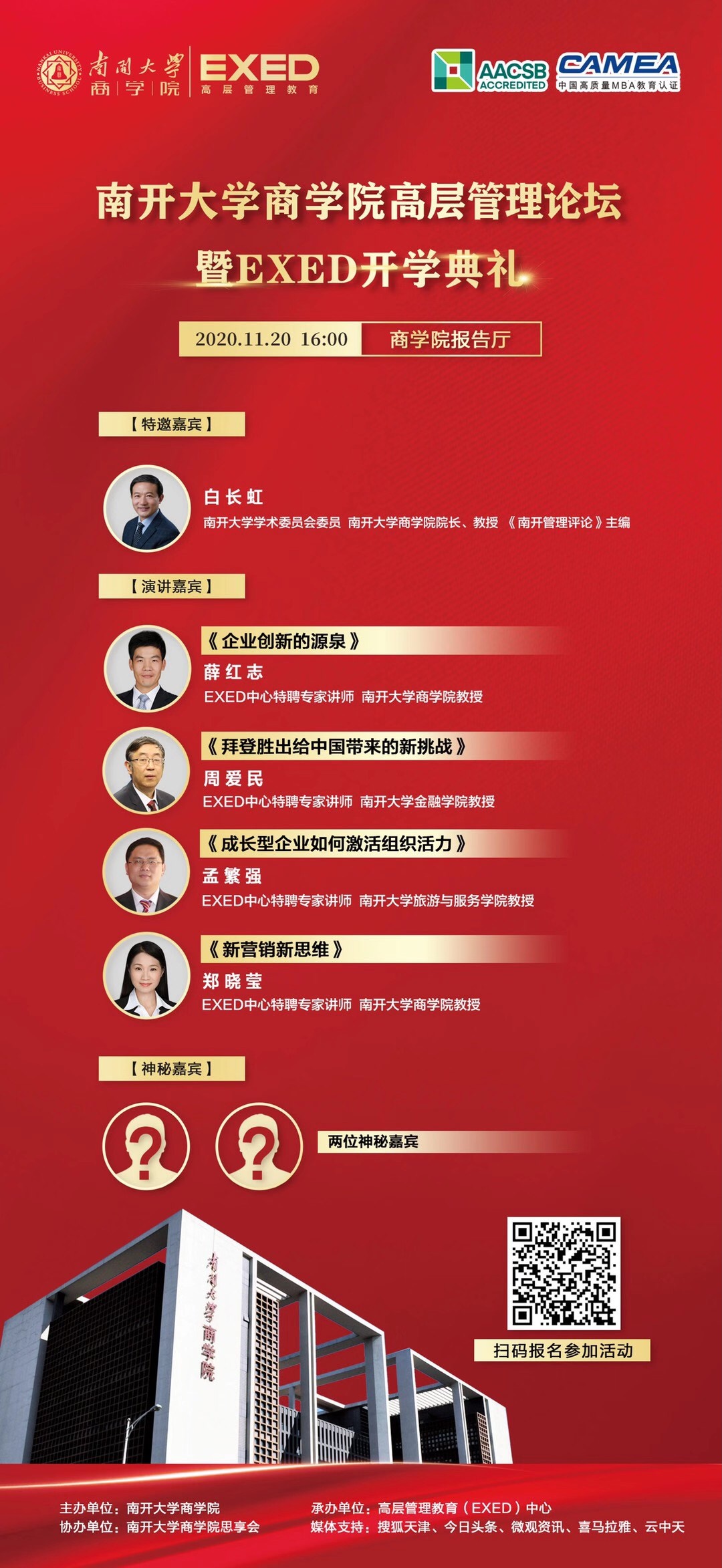 必赢bwin官网入口高层管理论坛暨EXED开学典礼将于11月20日下午16:00在必赢bwin官网入口一楼报告厅隆重举办。届时EXED特聘名师联袂登场,解读时政热点,研判经济走向,洞察市场逻辑,指引治企良方。这是一场久违的隆重典礼,更是不容错过的思想盛宴。在此,我们诚邀社会各界精英人士参加本次论坛,共度美好学习时光!