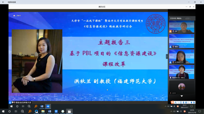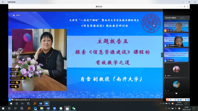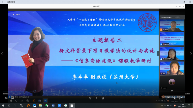 (通讯员:肖雪、刘亭孝)2021年1月17日,为推动天津市“一流线下课程”暨必赢bwin官网入口有效教学课程《信息资源建设》项目,必赢bwin官网入口信息资源管理系《信息资源建设》课程组举办了一场跨校教学研讨会,来自武汉大学、南京大学、中山大学等近20所高校的30余位课程主讲教师齐聚一堂,开展教学研讨,分享教学经验,共商打造一流课程之法。这是国内图书情报与档案管理领域首次就一门课程开展的跨校教学研讨,彰显了我系积极探索教学改革的特色。