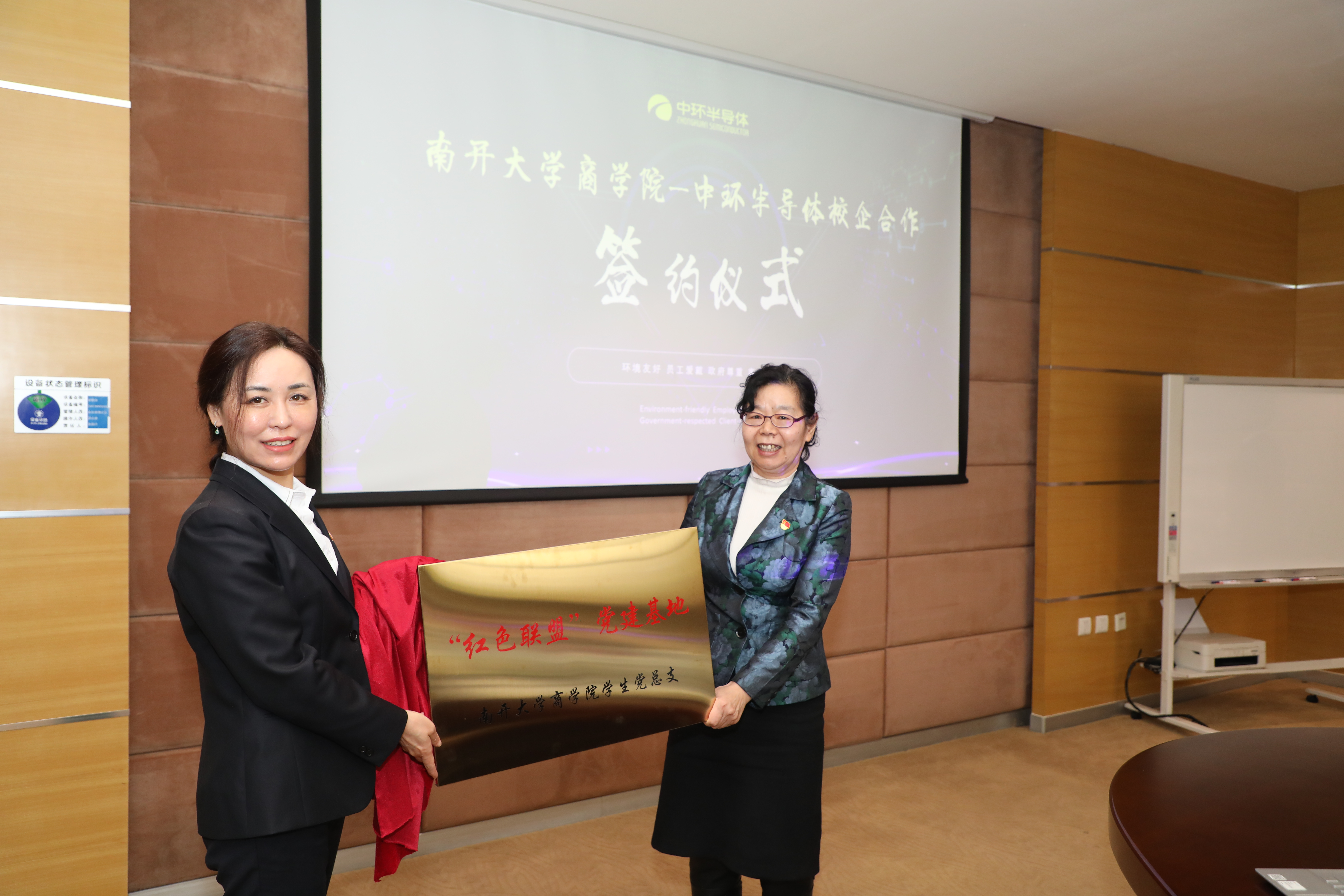 (通讯员卢彤菲)3月19日,必赢bwin官网入口与天津中环半导体股份有限公司就人才培养合作达成签约协议并“红色联盟”党建基地举行揭牌仪式。天津中环半导体股份有限公司党委书记安艳清、副总经理秦世龙、总经理助理贺晓雪、组织发展总监荆浩、党群服务总监王春蕾以及必赢bwin官网入口党委书记孙跃、人力资源系主任、博士生导师袁庆宏、院学生工作办公室主任卢彤菲、校发展委员会办公室资深资源发展官刘建欣出席会议,管理科学与工程党支部学生党员代表参会。