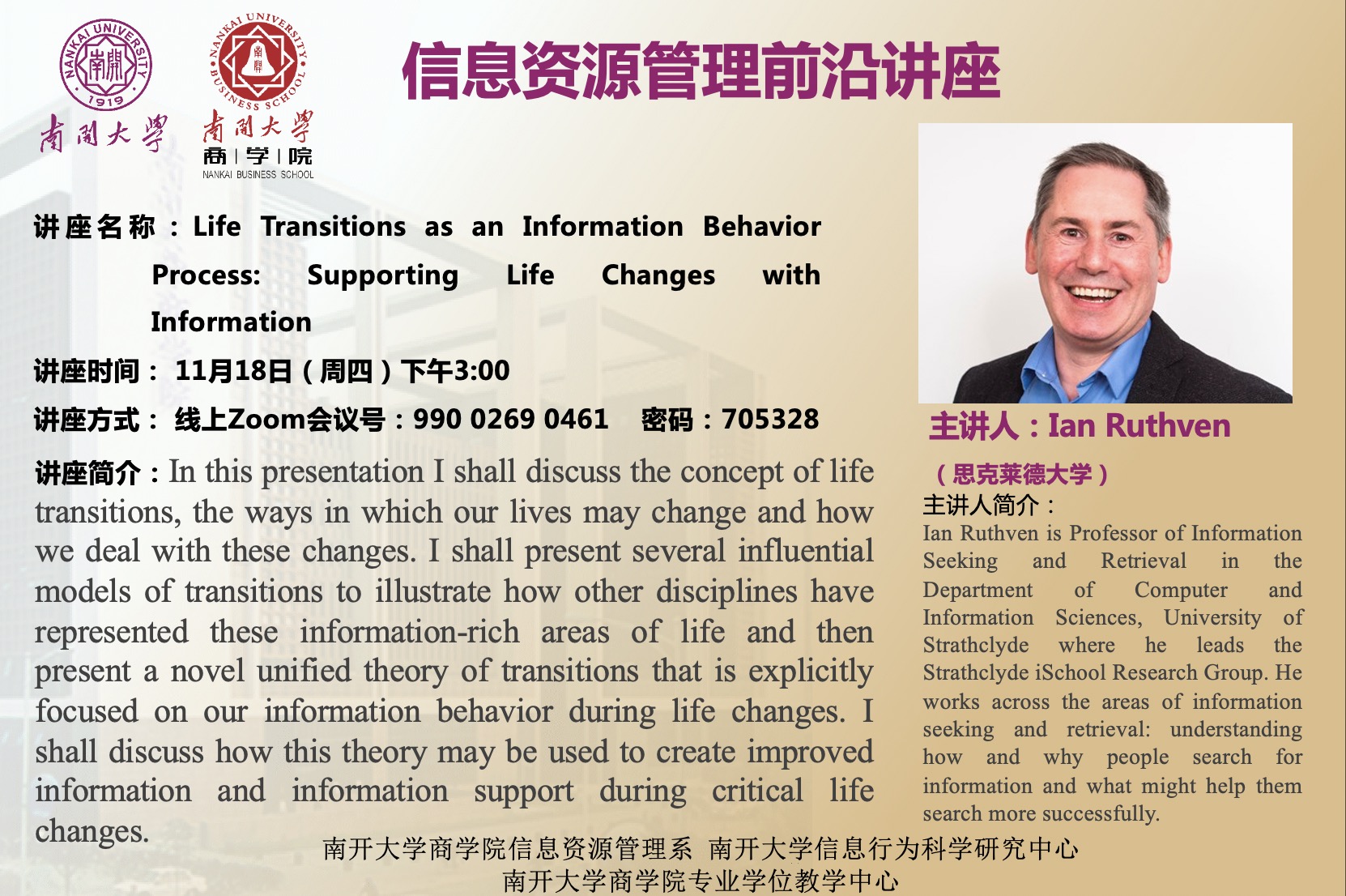 报告人:Ian Ruthven博士(思克莱德大学 教授)
