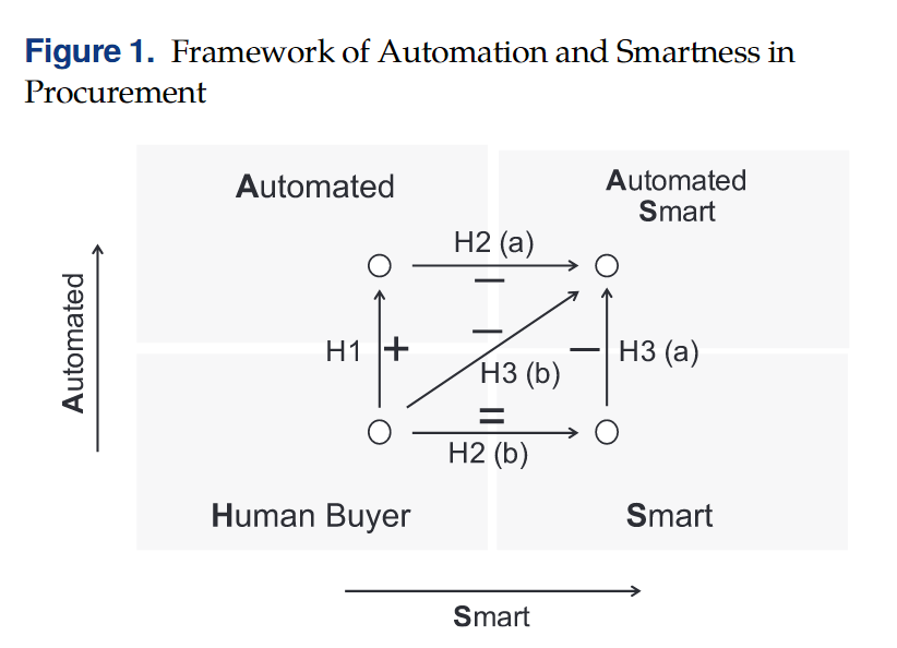 该项研究聚焦人工智能如何在采购中创造和交付价值,研究了买家对人工智能的使用如何影响供应商的报价策略。具体包含两部分内容,即自动化的影响(即买方使用聊天机器人自动询问价格而不是亲自询问的影响)以及智能化的影响(即买方使用人工智能算法来选择商品的影响),并在智能算法推荐和无推荐两种条件下比较供应商面对女性、男性和聊天机器人三种类型买家的批发价格报价。结果表明,如果没有配备智能化控制,聊天机器人买家会受到价格歧视,即其会收到比人类买家更高的批发价格报价。事实上,如果不使用智能化,仅使用自动化买家会获得最高的批发报价。然而,使用智能推荐系统可以有效地降低供应商对聊天机器人买家的报价。此外,当买家在采购中同时采用自动化和智能时,人工智能会带来最大的价值。因而,在没有智能化的情况下实现自动化并不是很有价值,即在考虑高度自动化之前,建立智能化系统是必要的。本研究揭示了买家在采购流程中开发人工智能的最佳步骤。