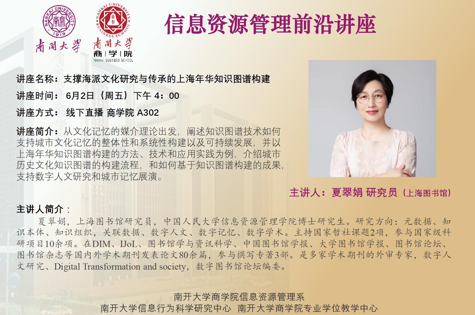 讲座题目:支撑海派文化研究与传承的上海年华知识图谱构建