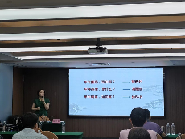 威海市委党校老师为参训学员现场讲授《甲午国殇的历史镜鉴》。党校老师结合世界近代化浪潮发展历程,通过讲故事、摆数据、做对比等方式,对甲午战败的后果、影响等进行了全面阐述,对甲午战败的原因进行了深度剖析。甲午战败导致天朝梦碎,传统的强国地位被彻底颠覆;赔款沉重,中国近代化进程严重受阻;主权沦丧,列强掀起瓜分中国的狂潮。甲午战败的自身原因在于社会发展的迟滞、执政理念的落后、民心民力的涣散。以古鉴今,我们要准确把握时代课题,践行初心担当使命;常葆党的先进性和纯洁性,做历史发展的引领者;践行人民至上的价值观,厚植党执政的政治基础。