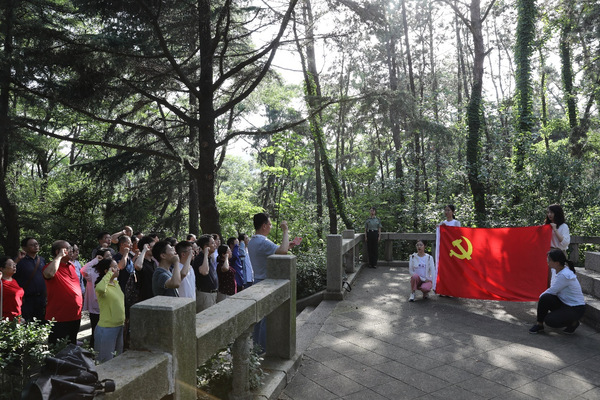 参训学员在天福山起义纪念塔前重温入党誓词
