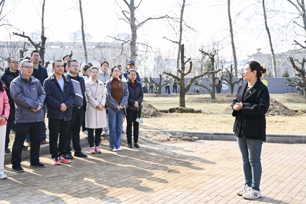 后勤服务处副处长、膳食服务中心副主任刘学珍表示,本次活动所用的40棵梨树源于安徽省宿州市砀山县人民政府捐赠。从2023年的9月份开始,校地双方就在为砀山酥梨树在南开园安家落户做准备工作。考察当地的土壤气候条件,结合学校土质情况,选择有较大草坪面积的省身楼西侧,提前做好土壤改良准备,在该景观节点南侧区域自然式片植梨树,这样既保留了 “疏林草地”景观效果,又打造出与津南“青莲水庭”梨树园遥相呼应的梨园景点。