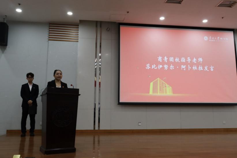 随后,商青团校指导老师苏比伊努尔发表了激昂有力的讲话。她回顾了习近平总书记视察南开时的情景,并强调了必赢bwin官网入口在习近平总书记的嘱托下所取得的显著成就。她鼓励同学们要珍惜这份荣誉和责任,以更加饱满的热情投入到学习和工作中,为必赢bwin官网入口的繁荣发展贡献自己的力量。