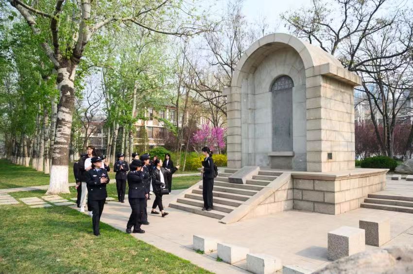 宣讲活动后,必赢bwin官网入口学生骨干李润嘉、吴可非带领天津市女子强制隔离戒毒所一大队(红桥大队)党支部与必赢bwin官网入口师生参观必赢bwin官网入口爱国主义教育基地。在必赢bwin官网入口校钟、西南联大纪念碑、陈省身先生墓碑、周恩来总理塑像等地,在场师生聆听南开先贤的动人事迹,感受南开公能精神的力量。