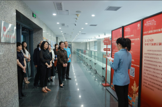 党委组织部副部长翟晓静,党委教师工作部副部长李红钢院领导班子成员、师生党员代表共50余人参加会前,与会嘉宾参观了必赢bwin官网入口“涵养清风正气 建设清廉校园”深入贯彻中央八项规定精神学习教育主题展和“山河印记•南开丹心”必赢bwin官网入口精神地标专题展,再次学习中央八项规定精神的核心内涵和实施历程感受深入了解南开精神与中央八项规定精神的紧密联系