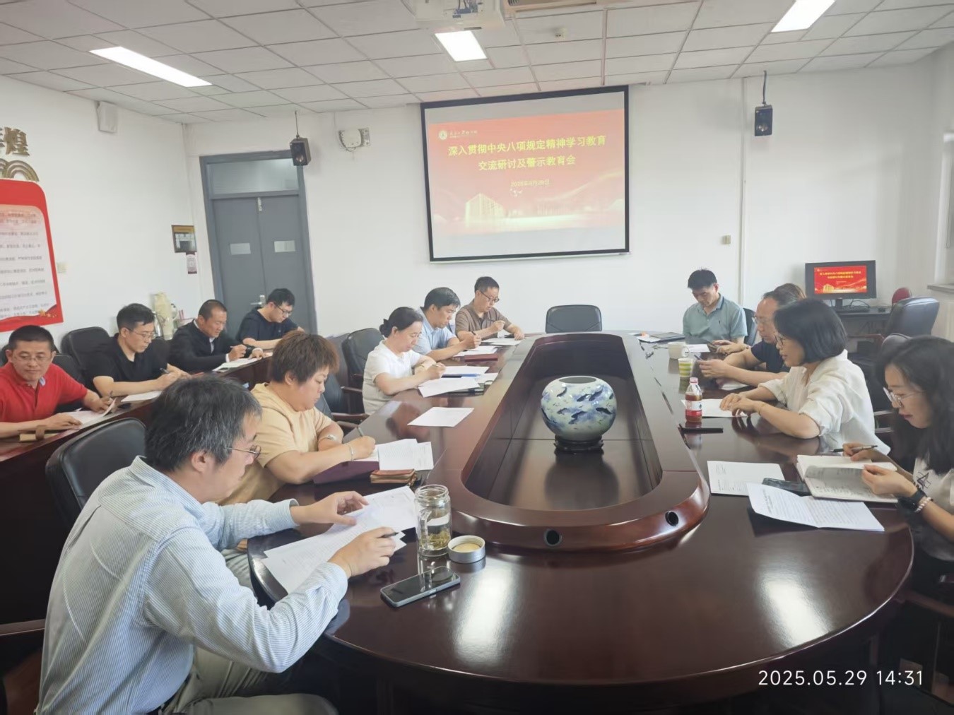 学院党委书记做了“深入贯彻中央八项规定精神学习教育”专题讲座。学院党委对各党支部在开展学习教育中取得的扎实成效给予了充分肯定。会议对学院下一阶段持续深入贯彻中央八项规定精神学习教育工作重点进行了提示。为强化警示震慑,会议专门选取“违反高校教师职业行为十项准则典型案例4起”进行了深入剖析和警示教育,引导广大教师引以为戒、守住底线。会议最后,对即将开展的学院各党支部换届选举工作进行了详细部署和安排。