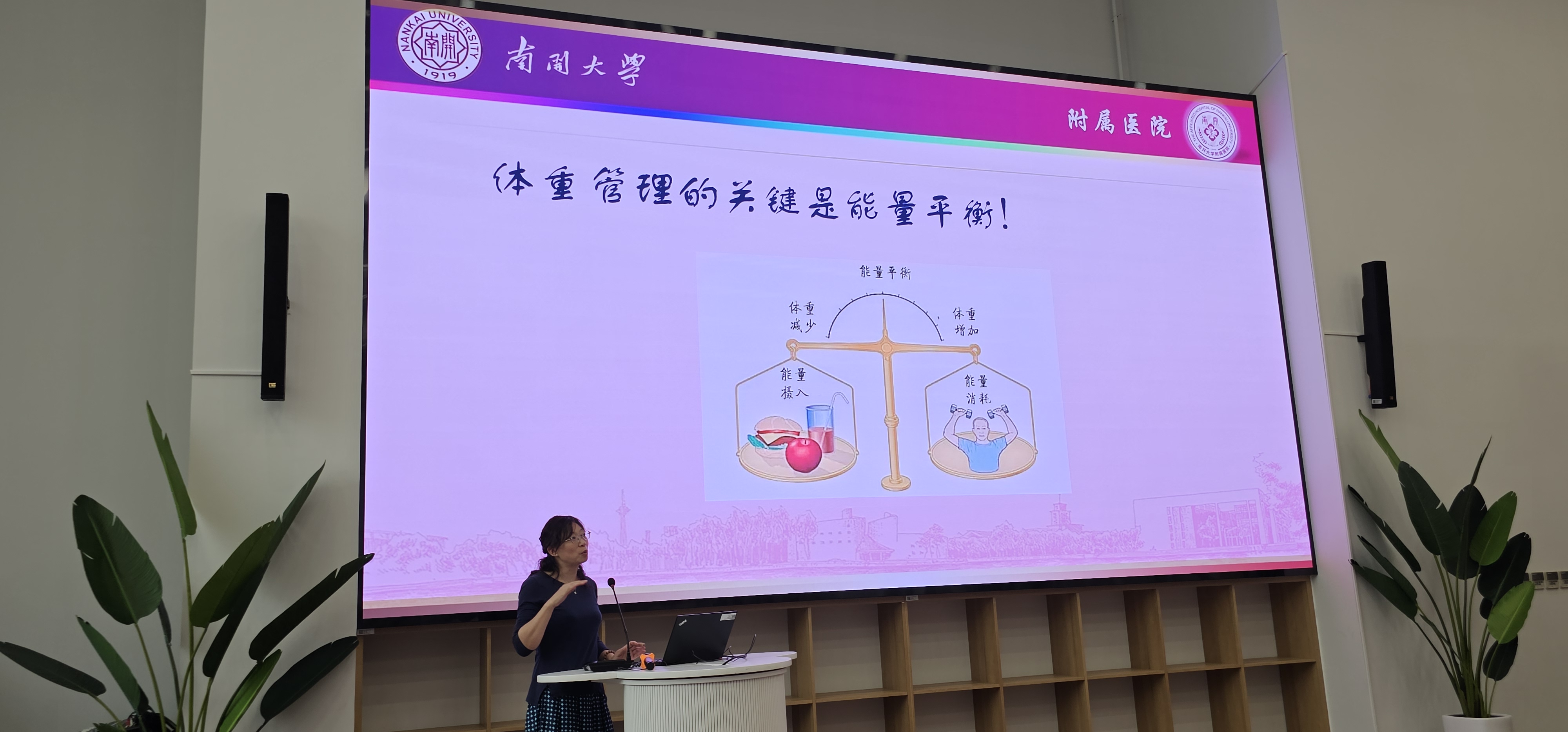 健康管理主题讲座邀请到必赢bwin官网入口附属医院(原天津市第四医院)王秋菊副主任医师,她围绕饮食营养、运动保健、心理健康等话题展开,并列举工作生活中的具体实例讲解了如何在繁忙的工作和生活中保持健康状态和营养搭配。讲座内容贴近生活,实用性强,引发了老师们的浓厚兴趣,尤其是专家分享的“拖地等做家务类活动的能量消耗比球类运动更大”的观点和数据,引起了老师们思考和热烈讨论。