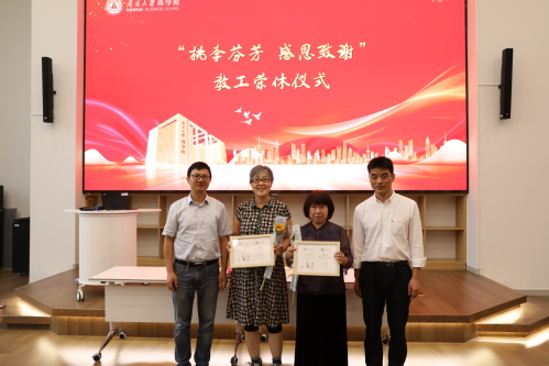 岁月如歌,教育人生。院班子为荣休教工代表张建华、卿志琼颁发感谢证书,与会人员热烈鼓掌,向两位老师致以崇高敬意。