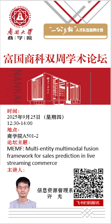富国商科双周学术论坛:MEMF: Multi-entity multimodal fusion framework for sales prediction in live streaming commerce