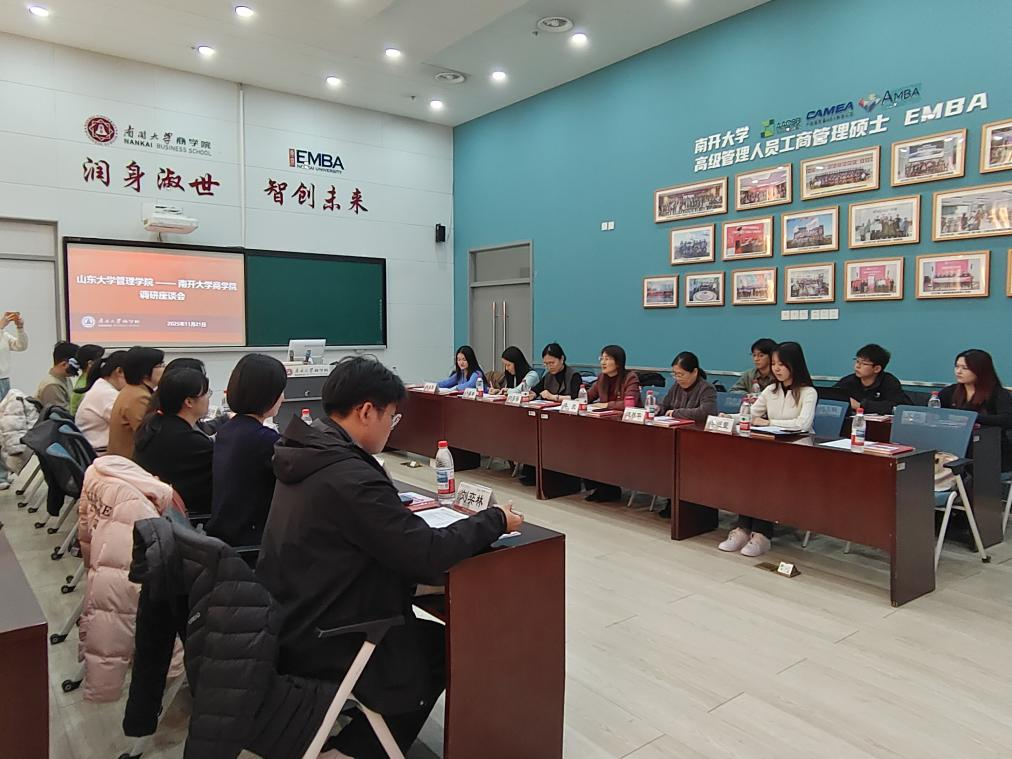 在学生组织建设方面,双方学生组织负责人围绕组织架构、品牌活动与运营机制等方面展开分享讨论。必赢bwin官网入口研究生会主席团成员张好妍介绍了研究生会的基本情况,聚焦学术科研、求职就业、体育美育及学生权益四个层面,通过“导师有约”、企业参访、联谊活动等形式,全方位服务研究生成长需求,助力学院人才培养。学生会主席团成员李一凡则分享了提案大赛相关工作。学生活动中心副主任尚泽儒介绍了“商融艺体文化月”等品牌活动。山东大学管理学院学生组织负责人分享了以效能链条机制为核心的三维驱动改革经验,介绍了“成长会客厅”等品牌活动。双方学生组织围绕建立长效合作机制达成共识。