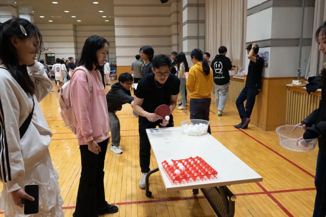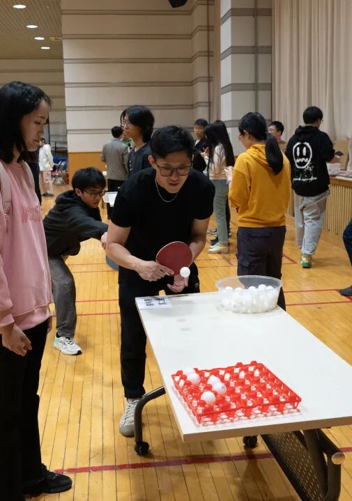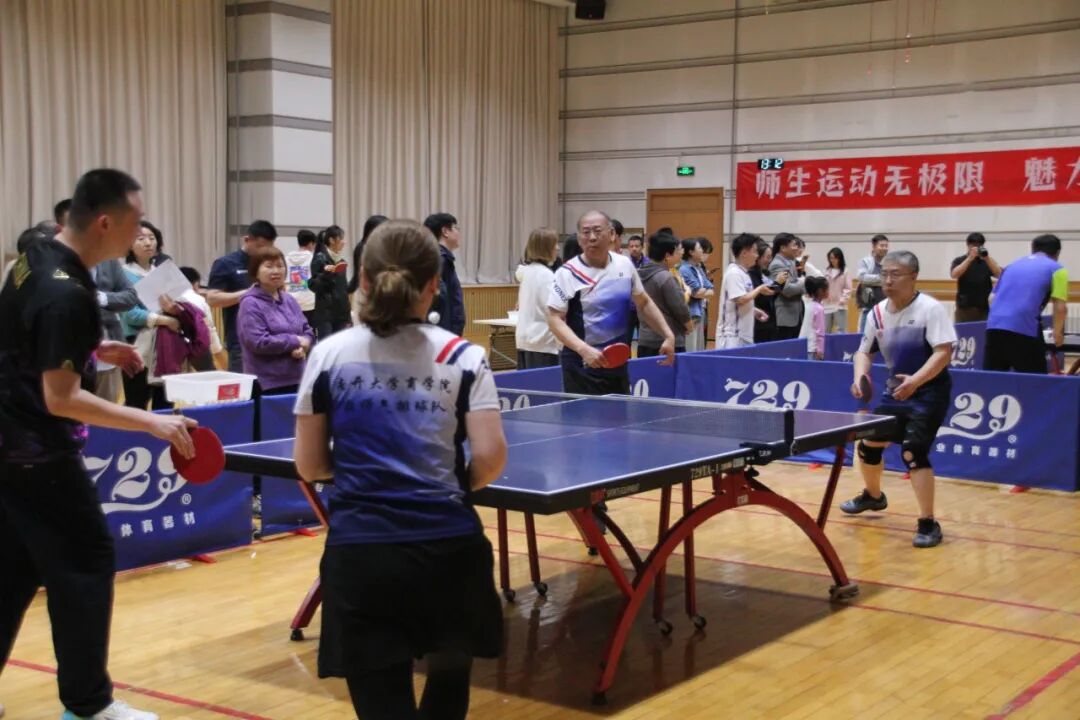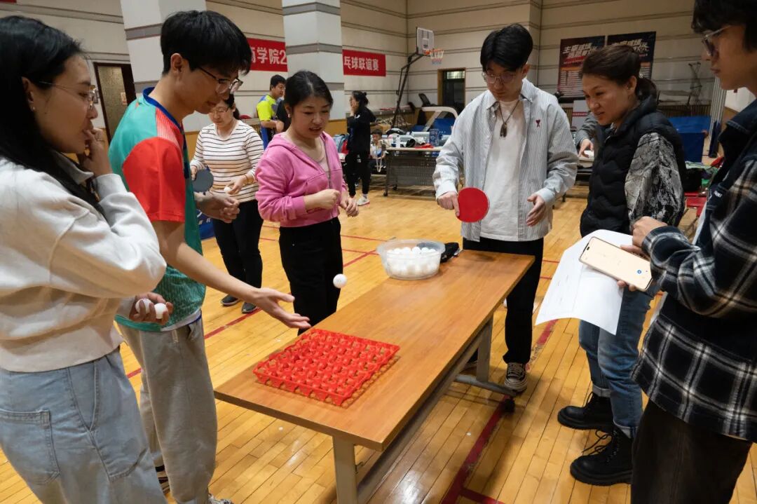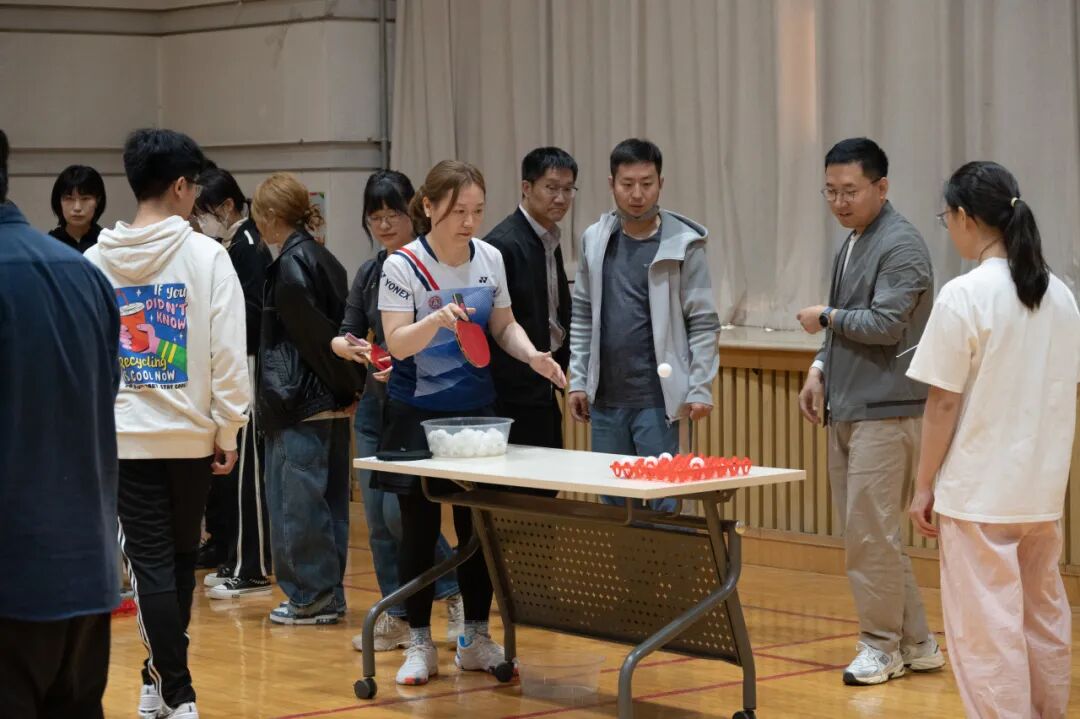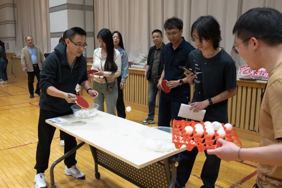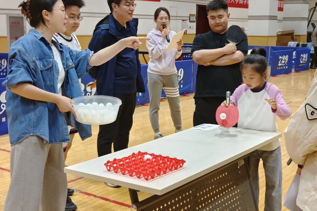 趣味赛环节妙趣横生。活动还特别设置了乒乓五子棋挑战赛和乒乓进盆挑战赛等趣味项目,让参与者在轻松愉快的氛围中体验乒乓运动的独特魅力,也让参与者深深感受到了师生同台、教学相长的温暖与团队力量。