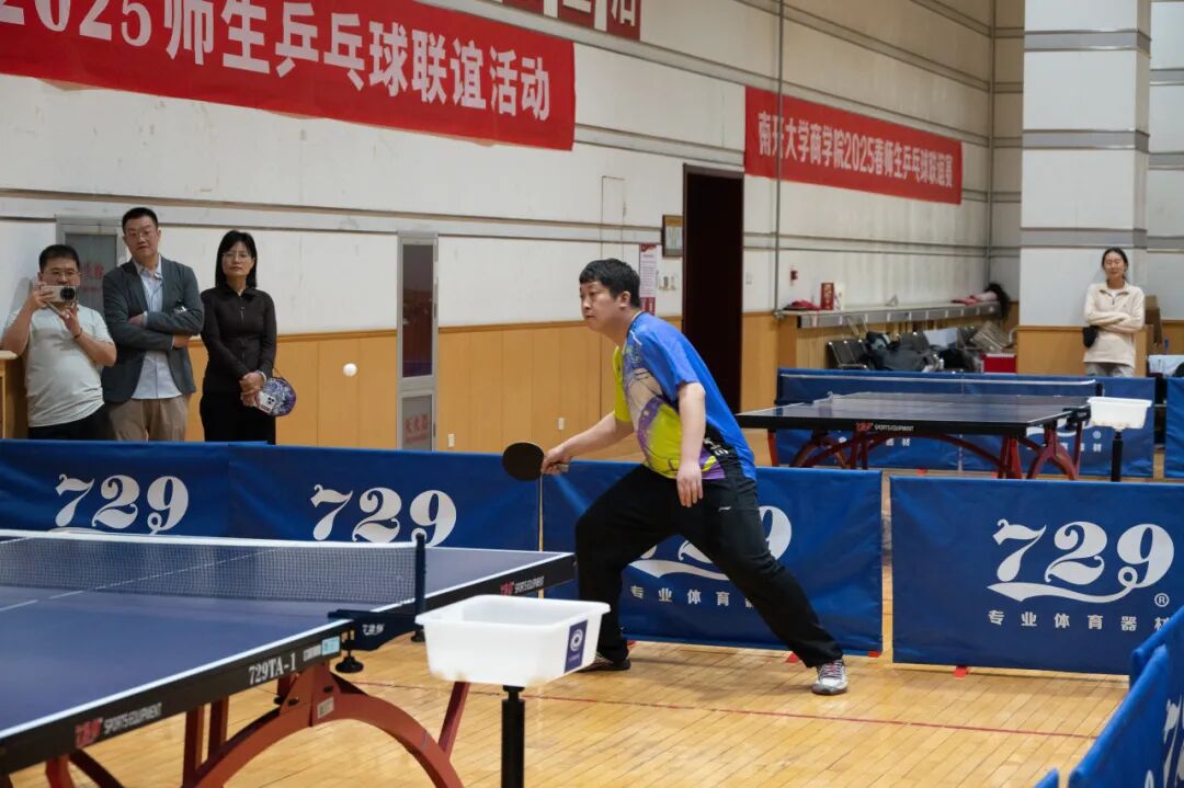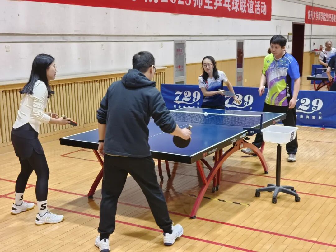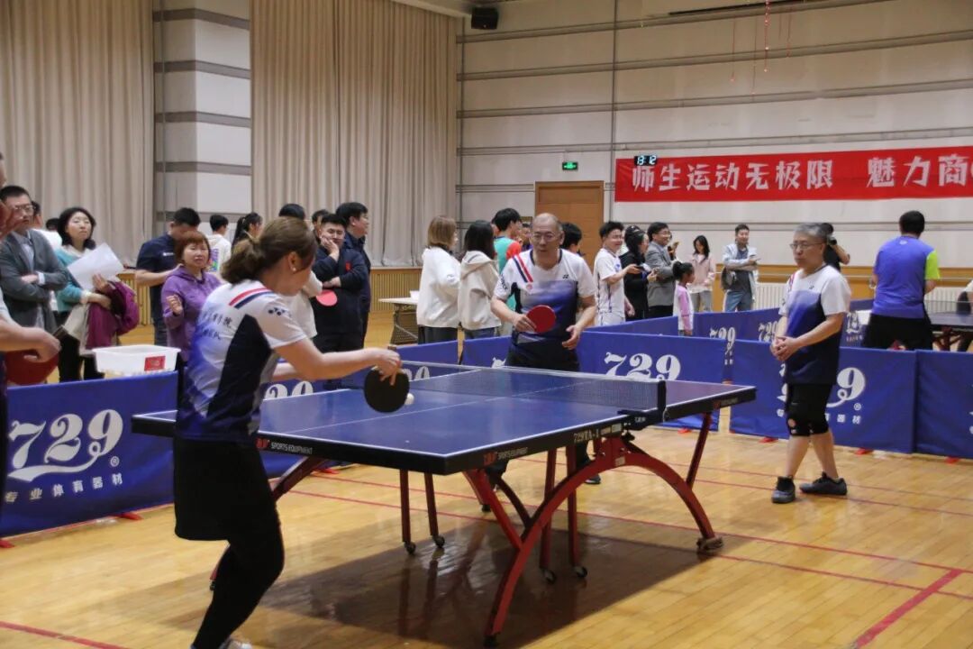 表演赛环节精彩纷呈。在师生单打表演赛中,丁铮锴老师与2023级MBA学生马磊展开激烈角逐,双方你来我往,精湛的球技赢得现场阵阵掌声。师生混双表演赛更是将现场气氛推向高潮,师生默契配合,展现了良好的精神风貌和团队协作精神。