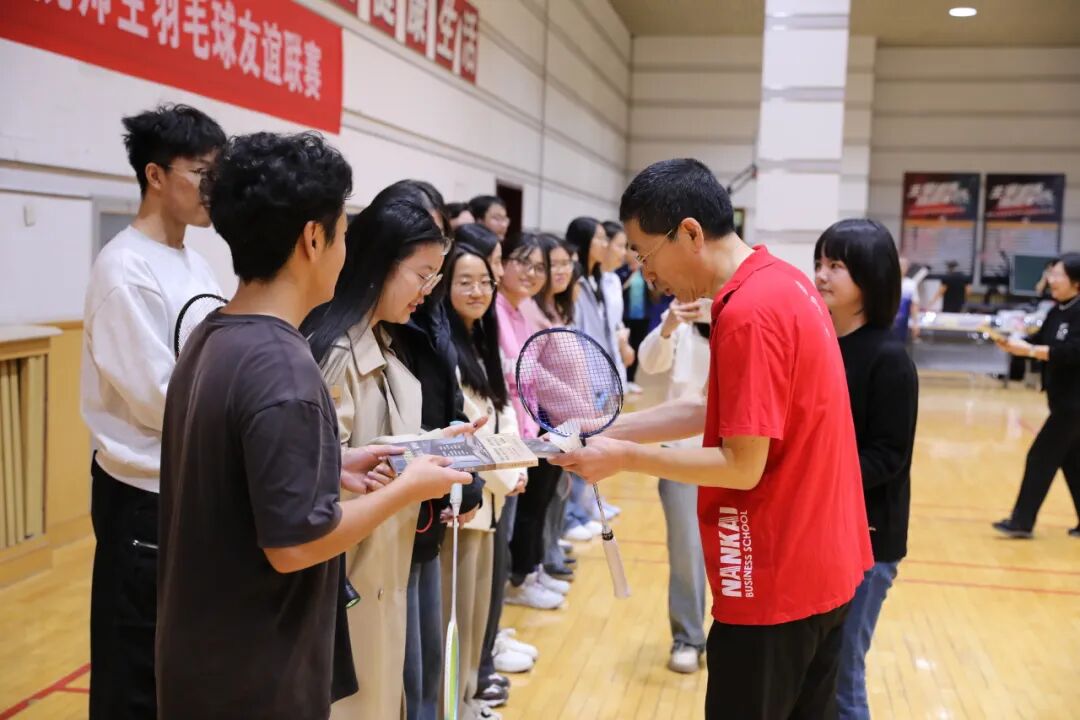 现场还上演了温情一幕——老师们特意为同学们带来如何高质量读研方面的专业书籍,财务管理系黄福广教授和学工办主任潘麒羽老师代表参加友谊赛的老师们为参加活动的同学赠书,将运动场上的鼓励延伸到学术道路上的指引,让师生情谊在书香与汗水的交融中愈发深厚。
