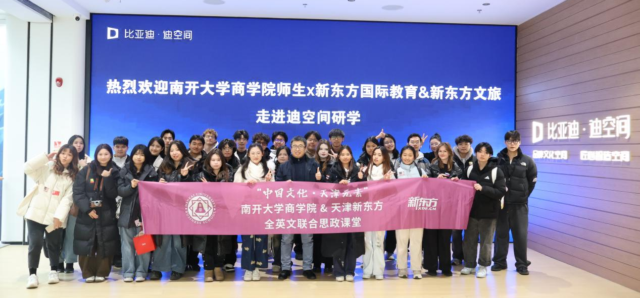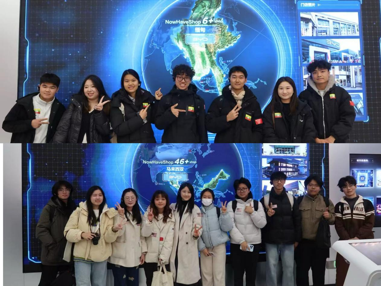 (留学生通讯员杨盈荣莫钧钧)商学院于12月11日组织来自多个国家的留学生,走进华北最大新能源汽车展厅比亚迪·天津迪空间,开展“未来智造”主题研学。本次研学是“中国文化·天津元素”留学生“第二课堂”系列活动在本学期的收官活动,留学生们通过企业参访、技术体验与动手实践,感知中国智造、理解绿色发展理念。