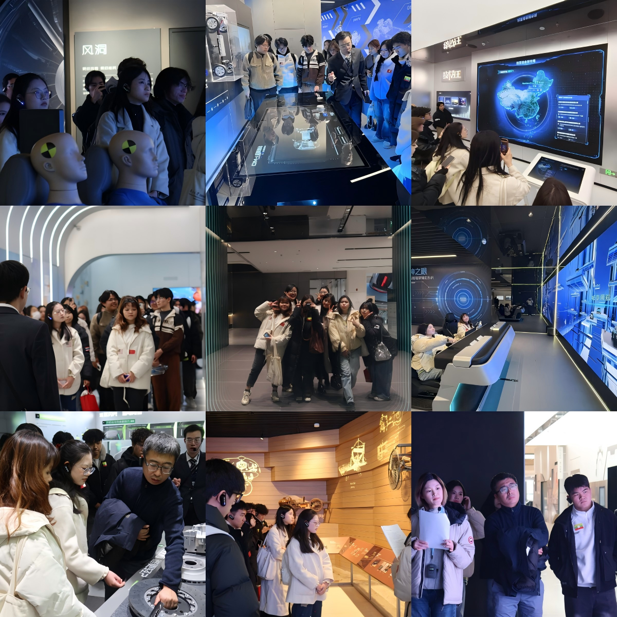 在正式进入参观环节前,老师鼓励留学生们带着问题走进企业,在观察中思考科技与人文的关系,在体验中理解中国“绿色发展”理念的实践路径。座谈会结束后,同学们去到迪空间,在专业双语导览的带领下,留学生们首先走进新能源汽车科普馆。从世界上第一辆电动汽车的诞生,到当代电动化、智能化的跨越,同学们系统了解了新能源汽车的发展历程。在“创新技术空间”,大家近距离观察车辆从设计、测试到量产的全流程,并围绕刀片电池、智能驾驶、混合动力系统等展开交流。现场还设置了安全气囊演示环节,融入交通安全教育,深化同学们的安全意识。“自然美学”展区将科技与文化有机相融。同学们从传统瓷器的釉色、山水纹理中,体会中国设计如何从自然与传统中汲取灵感,融入汽车色彩、造型与材质。