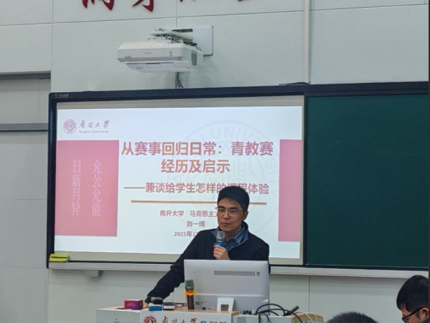 刘一博老师的讲座以“从赛事回归日常:青教赛经历及启示”为题,兼谈给学生怎样的课程体验。结合自身参加全国高校青年教师教学竞赛的经历,探讨了如何将竞赛中突出呈现的“一堂好课”转化为日常教学的“一门金课”。破解高校课堂“不抬头”难题的关键在于以学生“获得感”为核心,通过精准学情分析、创新教学设计、构建情感场域等策略,将思政课打造为兼具思想深度和情感温度的生命实践,讲出让学生“不舍”的思政课。