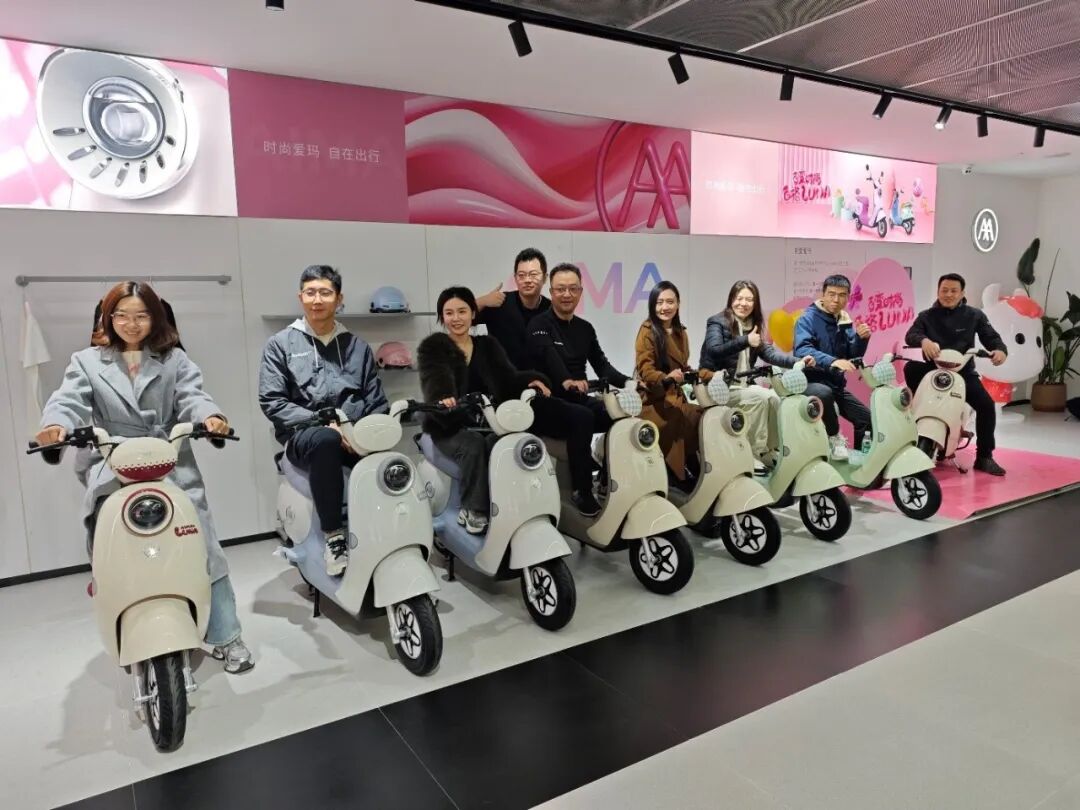 进入展厅后,卢总为师生们介绍了展厅内所陈列的每一款车的具体型号、技术特色、设计理念、产品定位等详细内容,除此之外,卢总也为师生们生动地讲解了每个系列产品打造背后的“故事”,例如爱玛是如何依托自身技术优势和数字化营销手段打造产品品质和外观创新,以不断为用户提供高品质的时尚出行体验的。展厅里有外观硬朗、性能强劲的“酷影”男士车型,也有外观优雅、色彩柔和灵动、智能化程度高的“Luna”女士车型。师生们纷纷“试驾”自己喜欢的车型并合影留念。