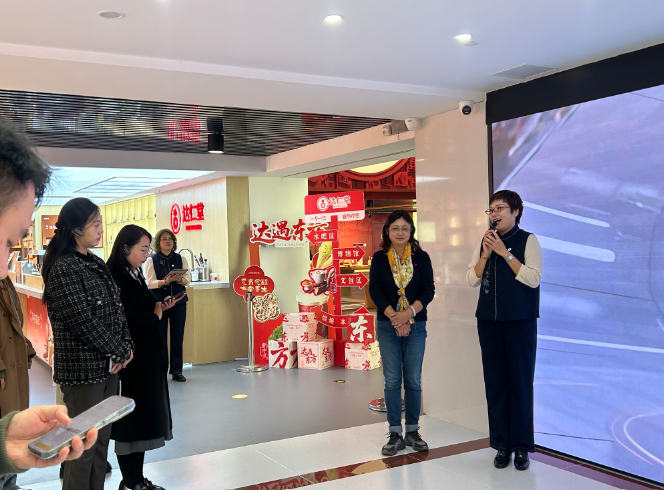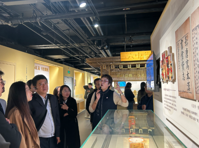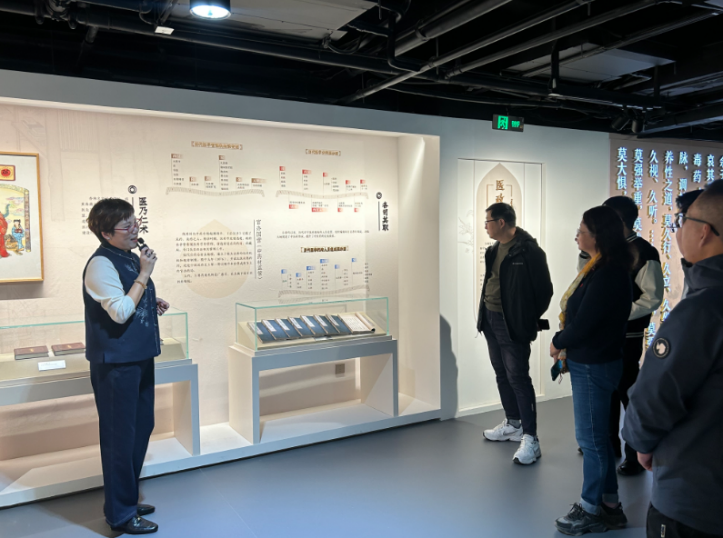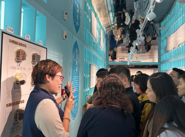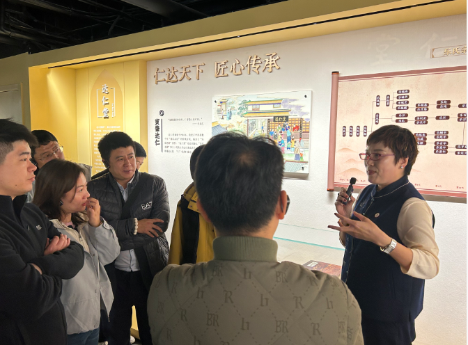 达仁堂中医药博物馆馆长李莉带领大家参观馆内的各大展区,在参观过程中,为同学们讲解了达仁堂的历史沿革及其在中医药领域的重要地位。李莉馆长深入阐述了达仁堂如何通过不断创新,不仅保留传统文化的精髓,还将现代营销理念与中医药产品和服务有效结合。与此同时,为同学们讲解博物馆内各种展品的背后故事,并分享了中医药文化在当代社会中的重要作用与发展前景。通过李莉馆长的细致讲解,同学们对达仁堂的创新发展与中医药文化的传承有了更加深入的理解,感受到达仁堂在推动中医药走向现代化过程中所作出的积极努力。