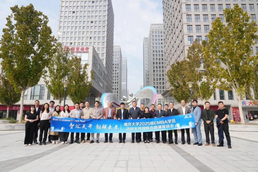 2025年10月15日,必赢bwin官网入口2025级EMBA学员、必赢bwin官网入口2025级EMBA功能党支部成员、MBA学员和富国书院学生代表到访天开园参加联合路演和座谈会活动。本次活动由必赢bwin官网入口、天津天开发展集团有限公司、天津宏达科技创新产业发展有限公司、天津津投城市开发股份有限公司共同主办。活动围绕国家重大战略需求,聚焦战略性新兴产业和未来产业,以“沉浸式参访+精准路演+深度座谈”的形式,统筹校内资源、挖掘外部合作机会,为EMBA学员链接科创生态搭建立体平台。